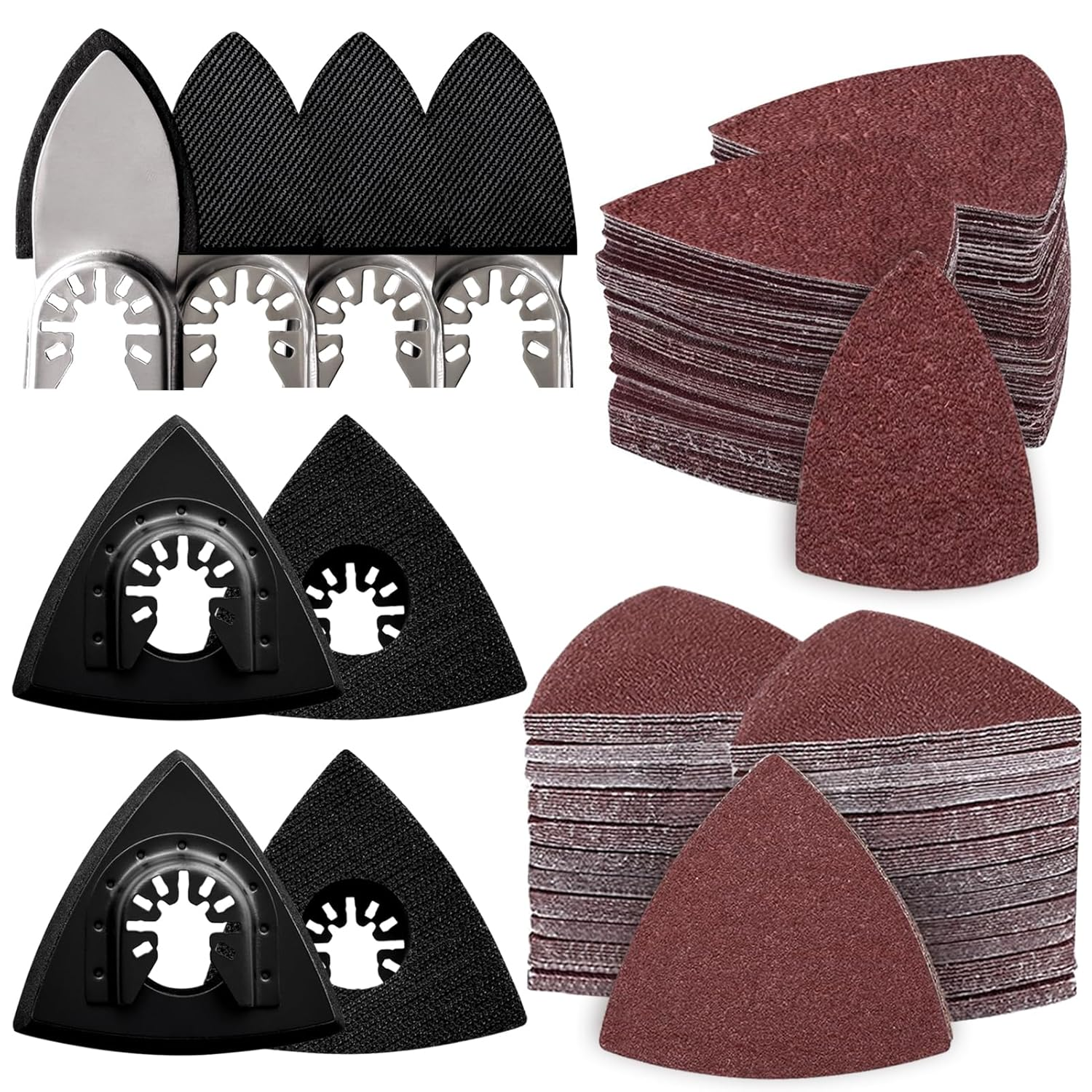 - Oscillating Tool Sanding Attachments: This package includes a variety of sanding attachments – 4pc 80mm triangle sanding pad holder, 4pc finger sanding pad holder, 100pc-80mm sanding pad, 100pc finger sanding pad – meeting your sanding needs efficiently.